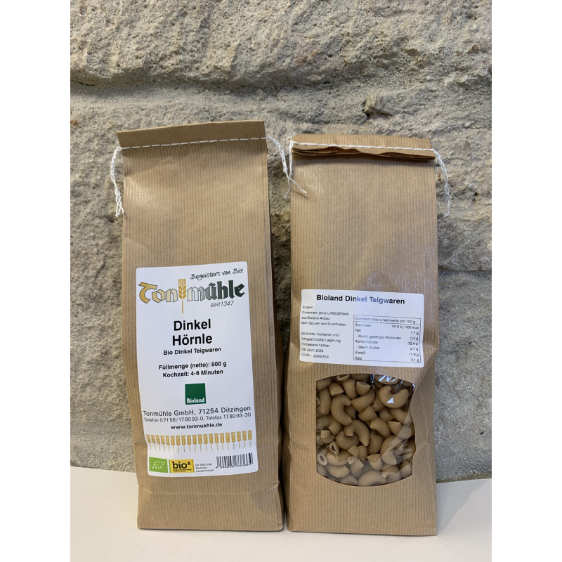 Hochwertige Bioland-Produkte aus Baden-Württemberg. Erhältlich sind Bioland Dinkel Hörnle, Bioland Dinkel Maccaronelli und Bioland Dinkel Spiralen.
